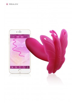 Stimulateur féminin connecté en forme de papillon pour stimuler le clitoris et le vagin à distance en toute discrétion, par Realove.