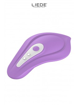 Luxueux stimulateur de clitoris vibrant avec fonction chauffante, à placer dans la culotte pour des plaisirs discrets même en public. Coloris violet.